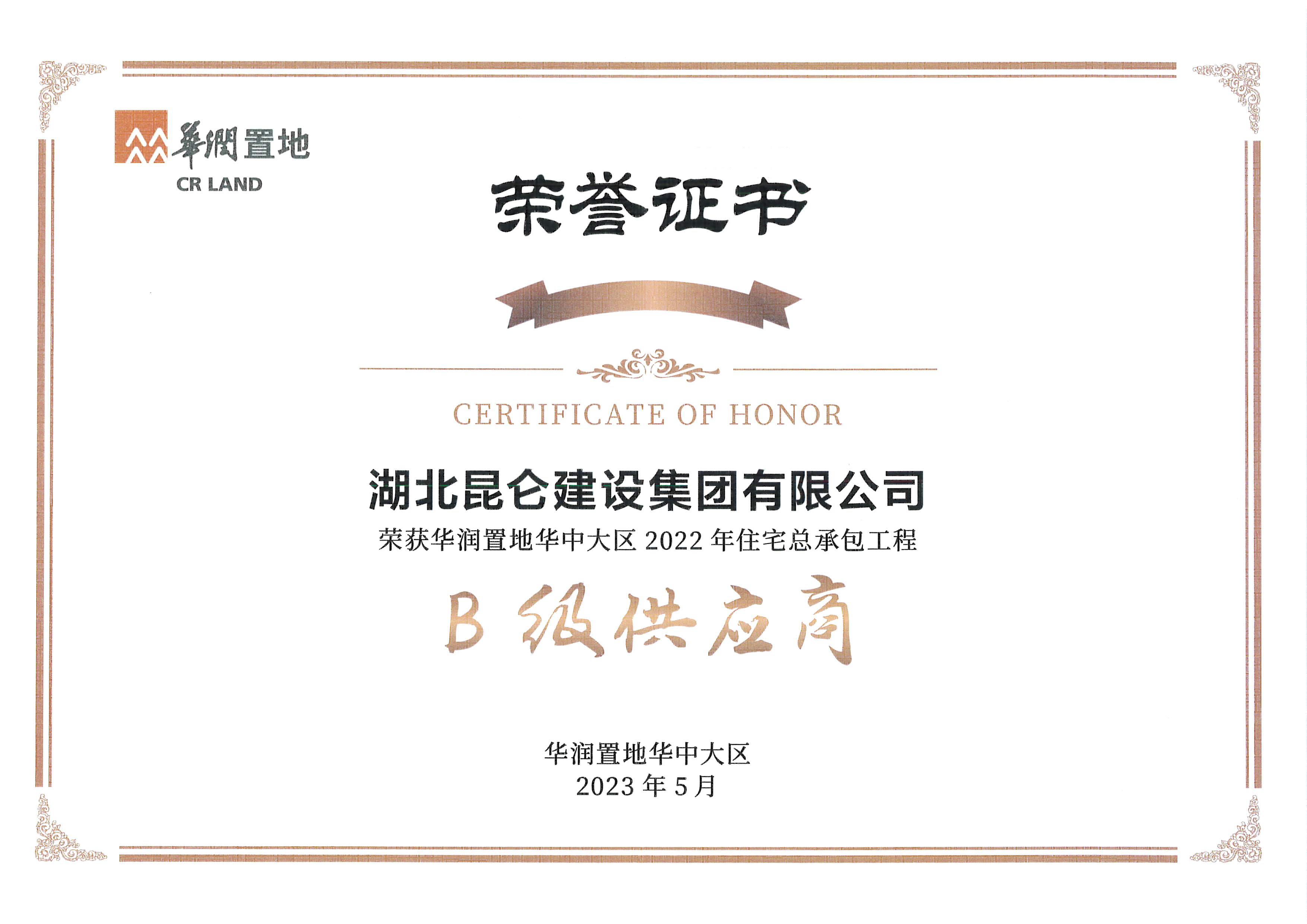 • 2023年5月榮獲華潤(rùn)置地供應(yīng)商“攻艱克難獎(jiǎng)”