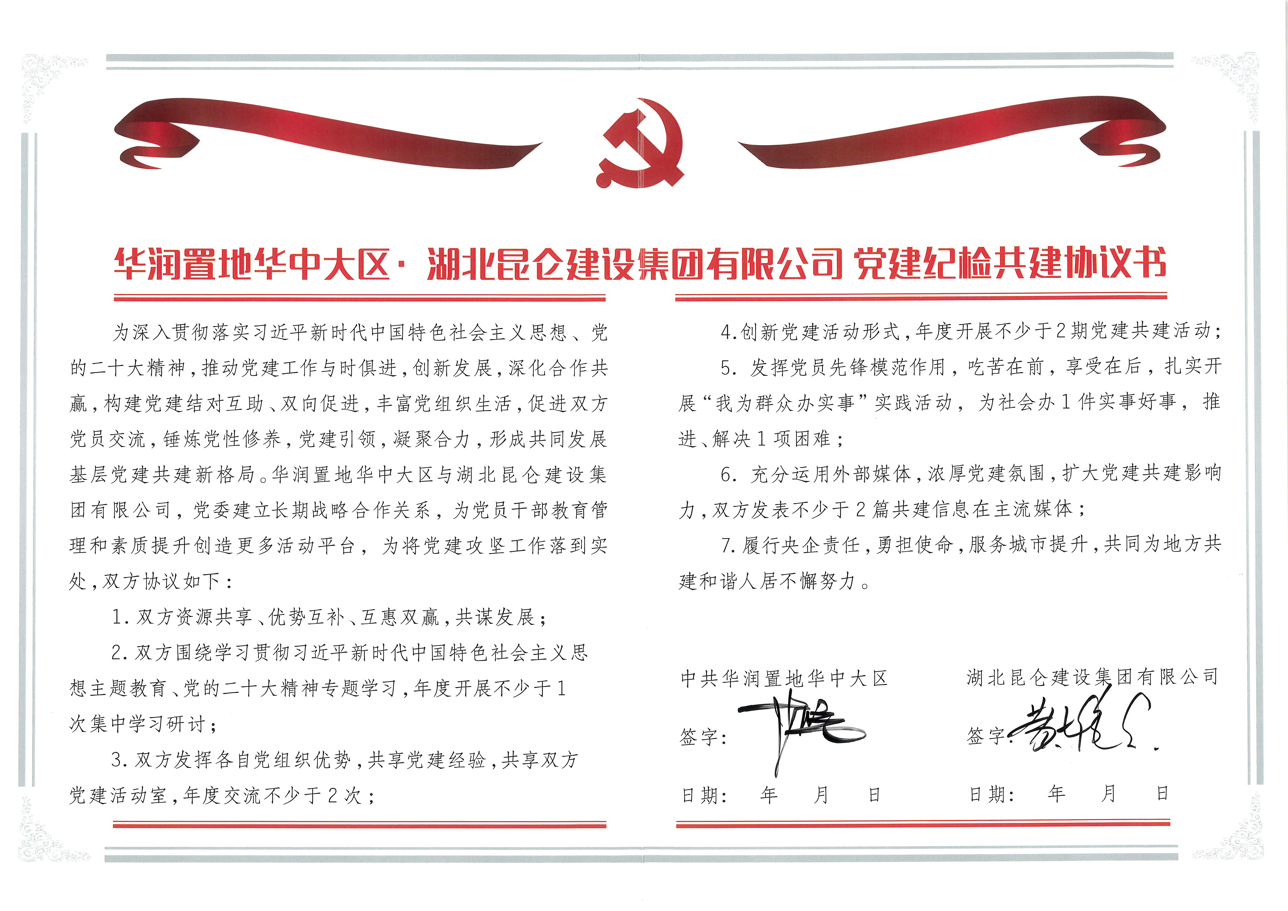 • 2023年簽署華潤(rùn)置地華中大區(qū)黨建紀(jì)檢共建協(xié)議書(shū)